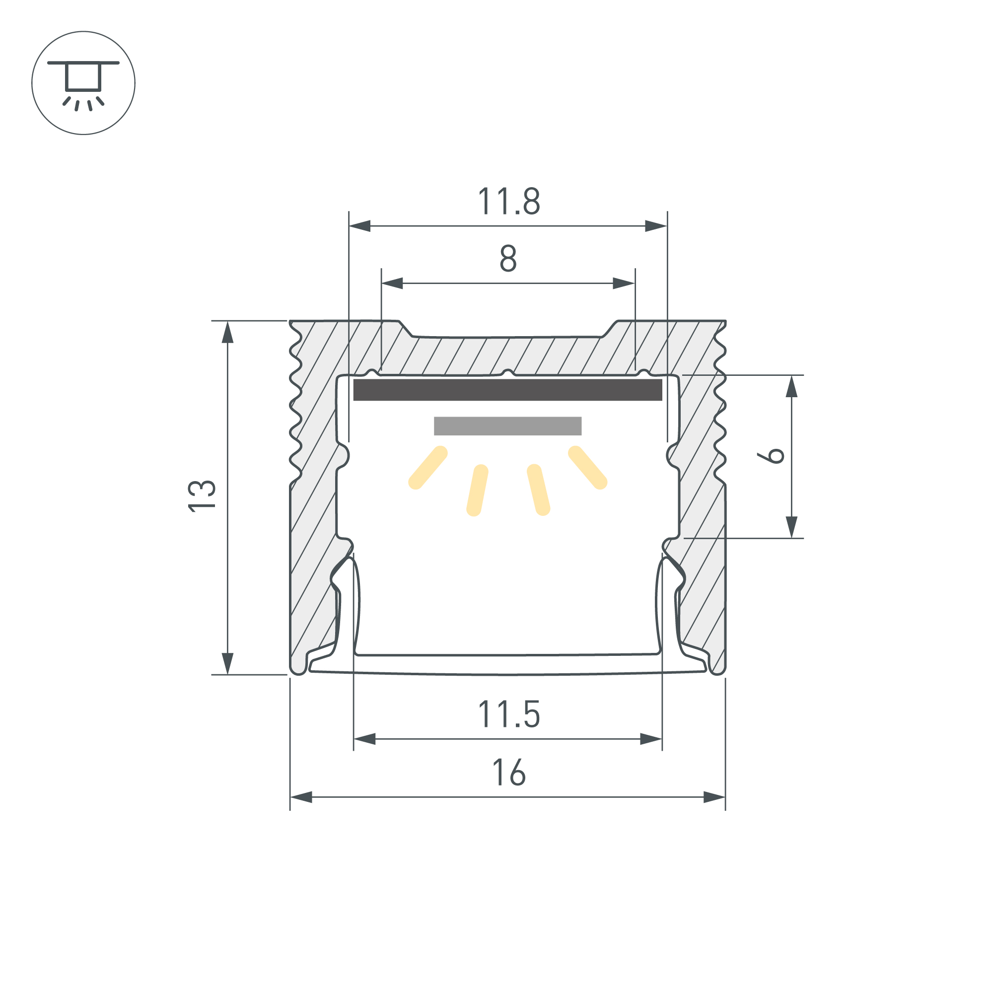 Алюминиевый анодированный профиль для светодиодных лент и линеек. Габаритные размеры (L×W×H): 2000x16x13 мм. Ширина площадки для ленты 11,8 мм. Экраны, заглушки и другие аксессуары приобретаются отдельно. Цена за 1 метр.