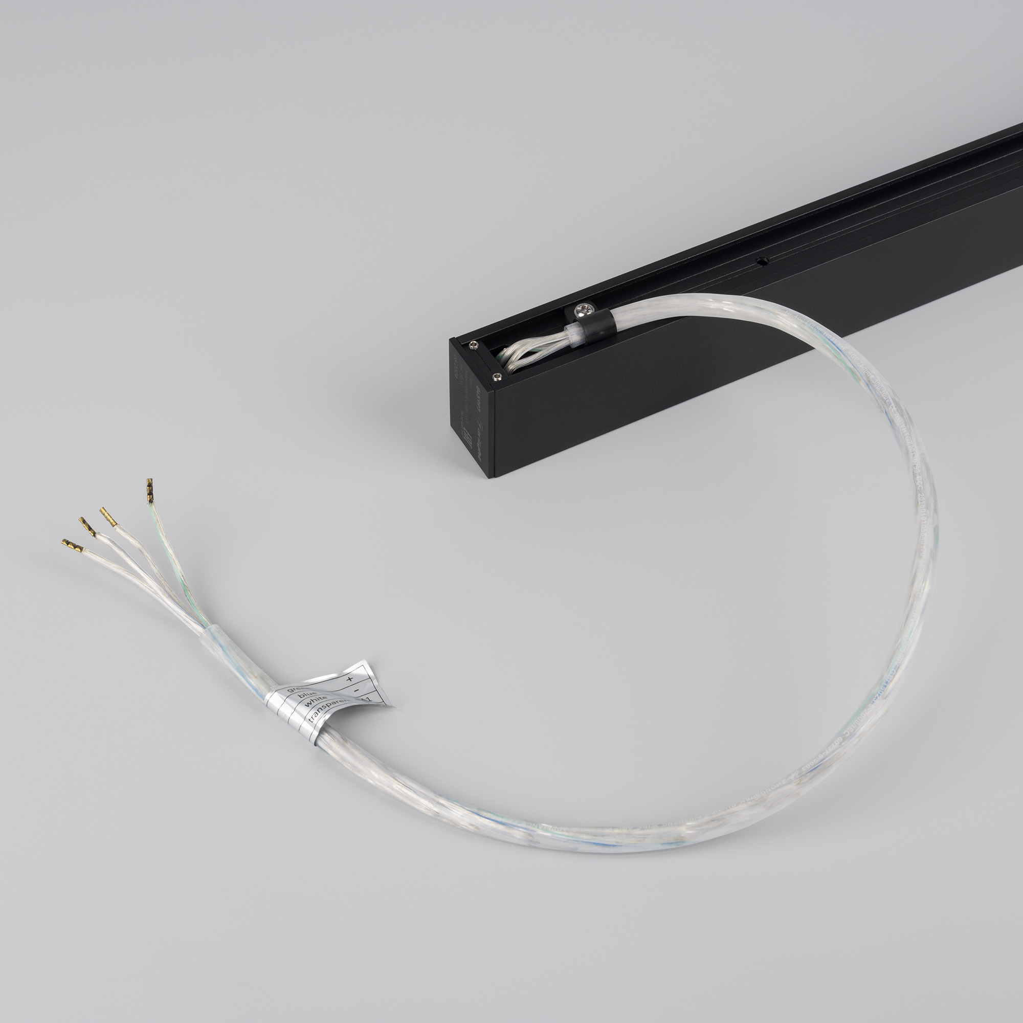 Подвесной, накладной магнитный трек, длина 1000 мм. DC24V, позволяет диммировать светильники по протоколу DALI. Материал алюминий, цвет черный. Две заглушки в комплекте. Размер ДxШxВ: 1003x25x38 мм. Размер (с учетом заглушек). Аксессуары для подвесного монтажа в комплект не входят. Не подходит к профилю держателю 035719. К плате идет провод 24В длиной 1м.