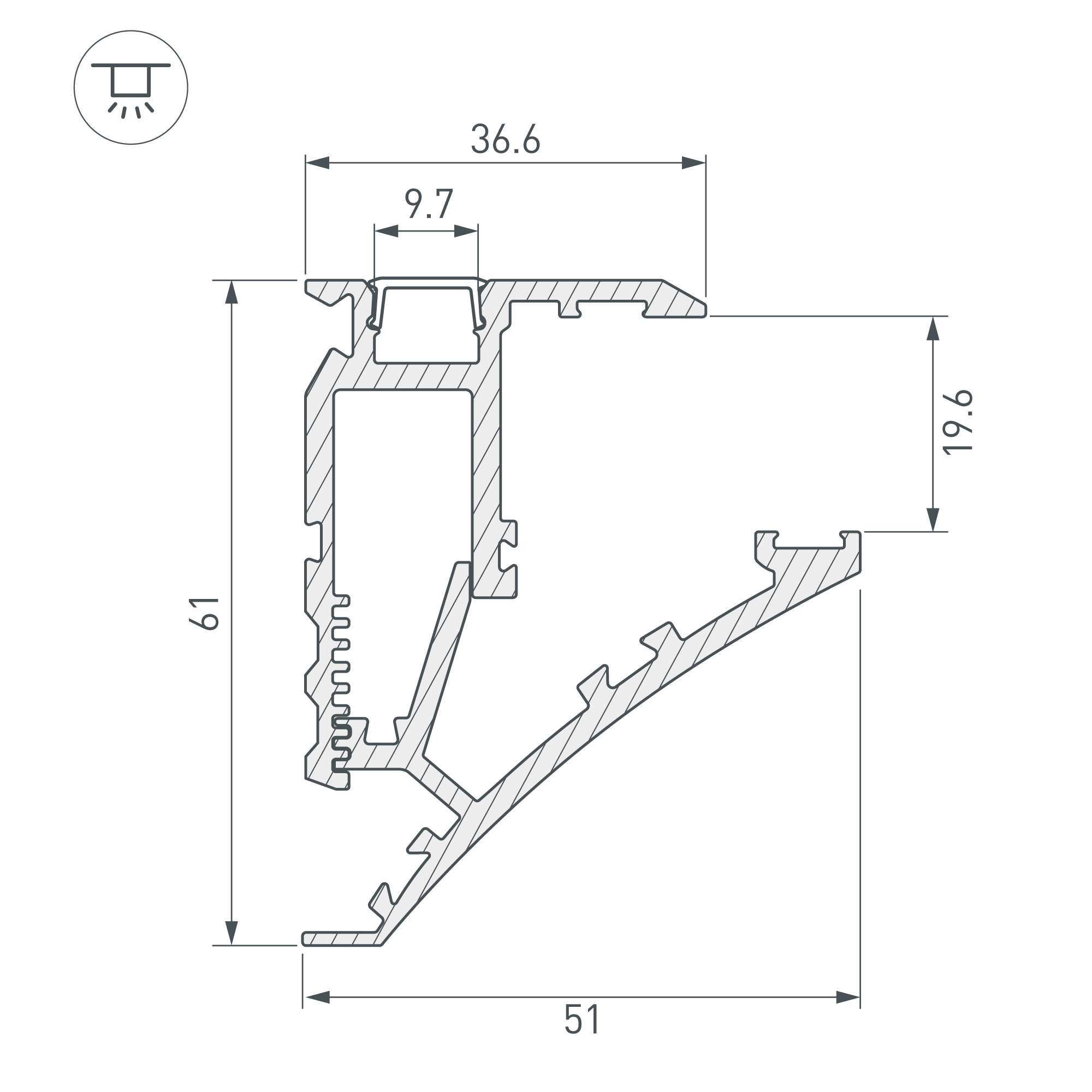 Алюминиевый анодированный профиль для монтажа и подсветки полок из стекла, пластика, дерева толщиной от 8 мм до 16 мм. Максимальная ширина полки 33 см. Максимально допустимый вес: 5 кг на каждый 1 м длины. Свечение в двух направлениях: подсветка стекла, подсветка прилегающей стены (наверх). Габаритные размеры (L×W×H): 2000x51x61 мм. Ширина площадок для лент 8 и 12 мм. Заглушки и другие аксессуары приобретаются отдельно. Цена за 1 метр.