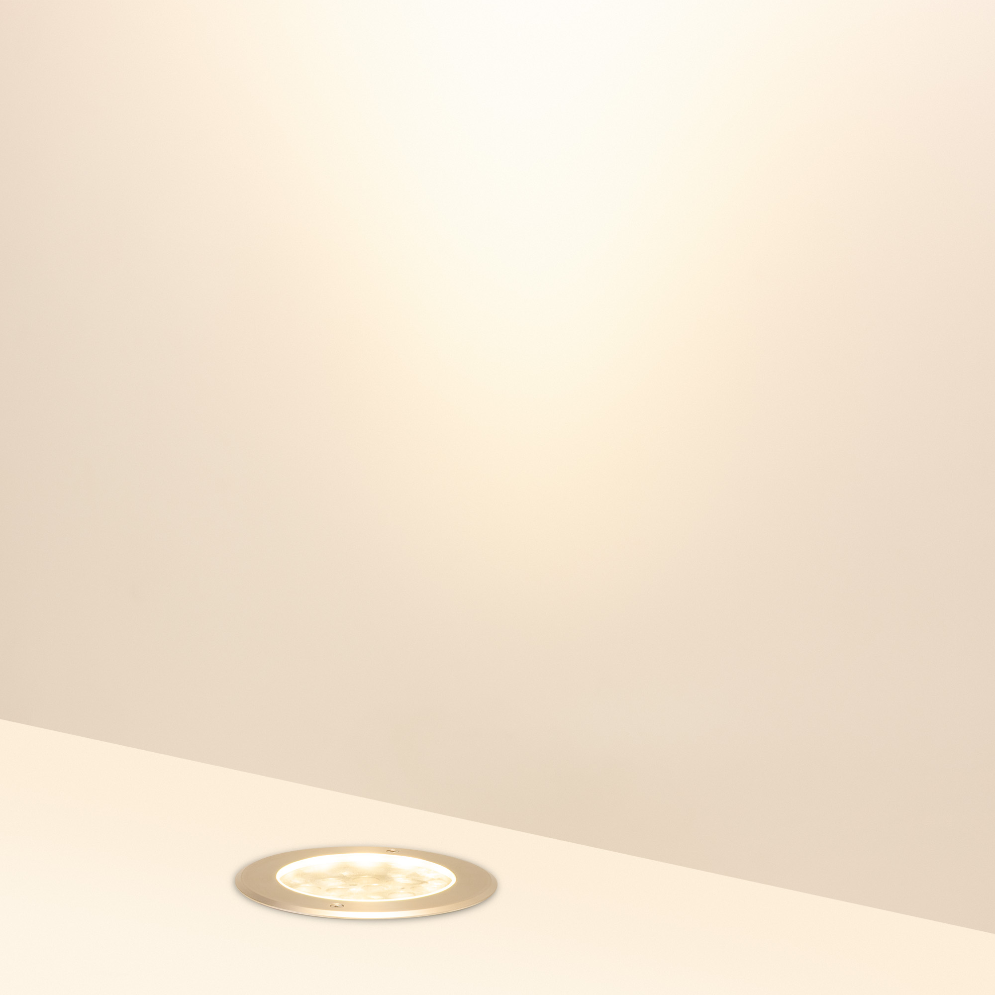 Встраиваемый светодиодный светильник для грунта и пола. Мощность 36Вт, световой поток 2824 лм, цвет теплый 3000К. CRI(Ra)>80, угол 45°. Круглый влагозащищенный корпус IP67, нержавеющая сталь. Экран закалённое стекло. Питание 230В, 36Вт. Размер DxH Ø210x125мм. Установка в отверстие DxH Ø195x119мм.