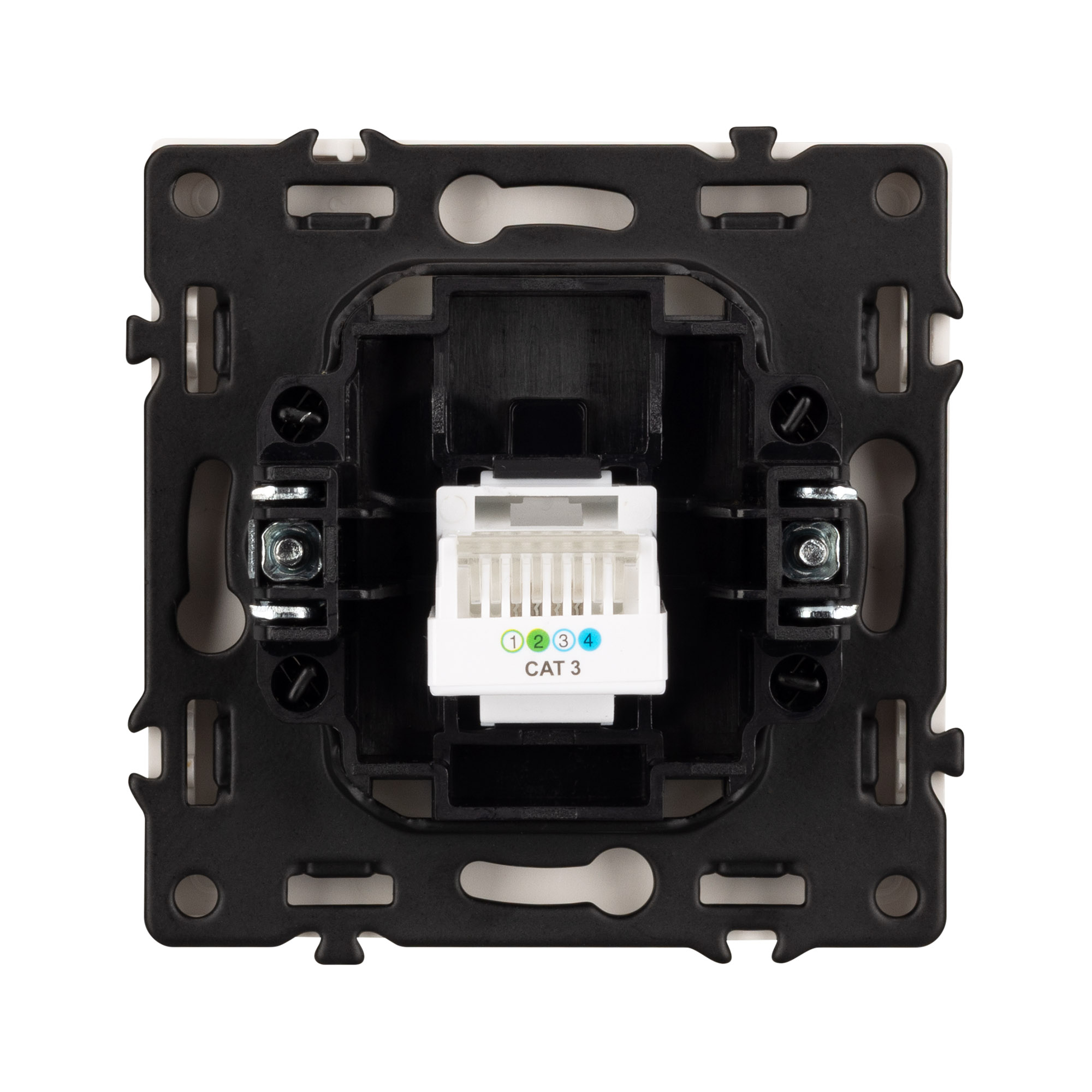 Строгие геометрические линии гармонично сочетаются с функциональностью продуманных механизмов, создавая идеальное решение для дизайн-проектов, где важны как эстетика, так и практичность. Механизм телефонной розетки совместим с рамками серии NOBE, создает утонченный минималистичный вид. Скрытый тип монтажа позволяет гармонично встроить в интерьер любого современного дизайн-проекта. Видимая часть механизма выполнена из высококачественного пластика цвета никель и имеет Soft-Touch покрытие, что придает изделию приятные тактильные ощущения и стильный внешний вид. Выходной порт RJ-11 (Female) формата 6P4C соответствует категории 3 (Cat.3). Самозакрывающаяся крышка защищает выходной порт от повреждения и загрязнения внешних контактов разъема. Контактная часть выполнена по технологии IPC (изоляционно–пробивающего контакта) с нанесением цветной маркировки схемы разводки на корпус, позволяя быстро и легко подсоединить механизм компьютерной розетки к большинству многожильных кабелей типа UTP (неэкранированные). А усиленные распорные лапки двойного захвата надежно фиксируют механизм в установочном подрозетнике круглого сечения диаметром 60мм. Суппорт окрашен в черный матовый цвет под основу механизма и выполнен из металла толщиной 1,5мм, что обеспечивает безопасность и уверенность в установке. На каждой стороне суппорта размещены фиксирующие элементы, позволяющие комбинировать механизмы в системы до 5шт как горизонтально, так и вертикально.