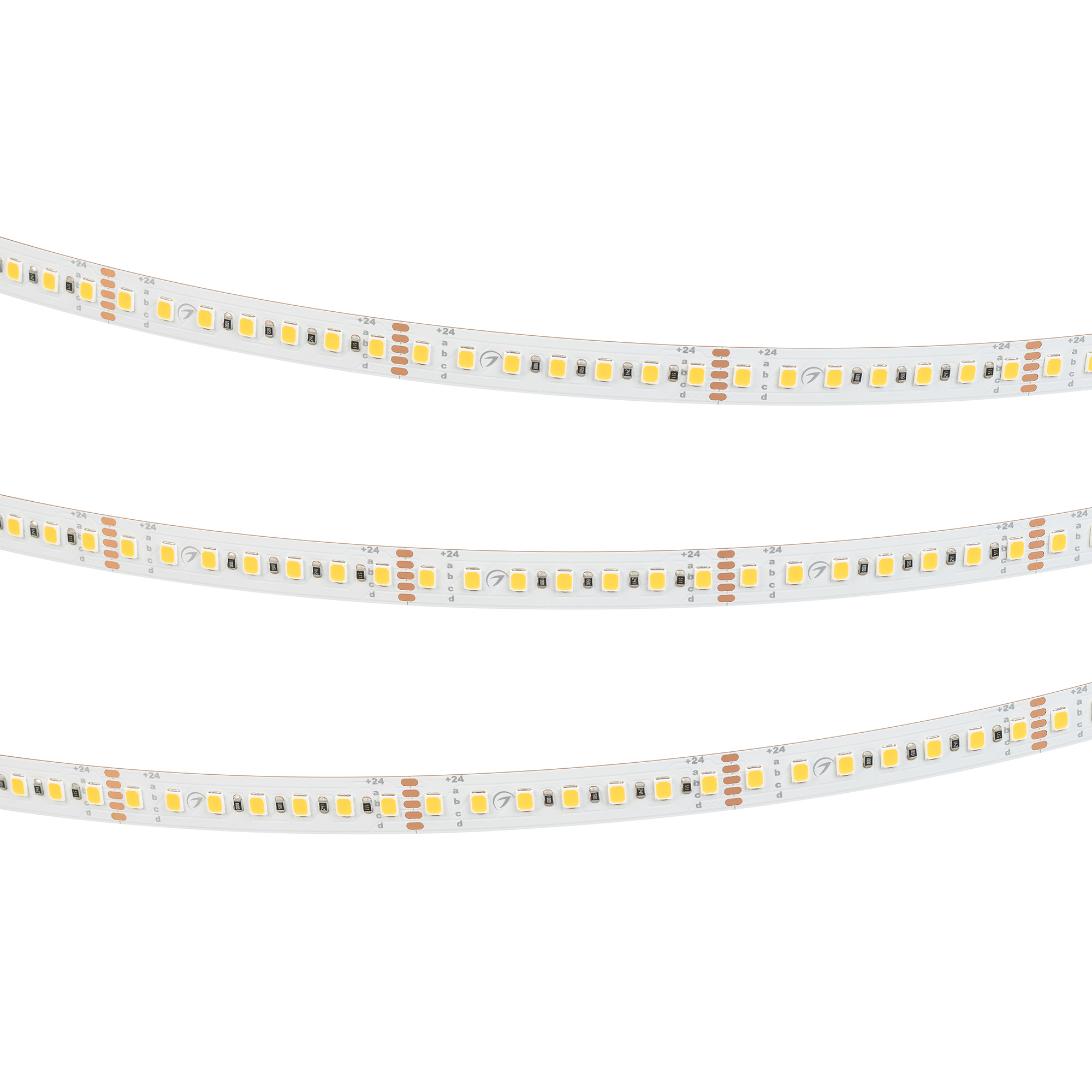Светодиодная лента UL серии A140 с выбором подключаемых мощностей. Светодиоды SMD 2835, 140 шт/м, белая плата шириной 8 мм, скотч 3M. Цвет ТЕПЛЫЙ 3000K, индекс цветопередачи CRI>90, угол 120°. Питание 24 В, мощность 5-20 Вт/м с шагом мощности 5 Вт/м (25-100 Вт на 5 м), шаг мощности. Размеры 5000x10x1.2 мм. Мин. отрезок 50 мм, 7 светодиодов. Цена за 1 м.