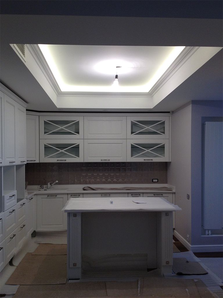 Светодиодная лента arlight® была установлена повсюду: многоуровневых потолках, потолочных карнизах, разнообразных нишах стен и потолков. На кухне сочетается функциональная и декоративная подсветка: подсветка рабочей поверхности кухни - её столешницы, установленная под верхние шкафы, и подсветка фасадов нижних шкафов, вмонтированная в кромку под столешницей.